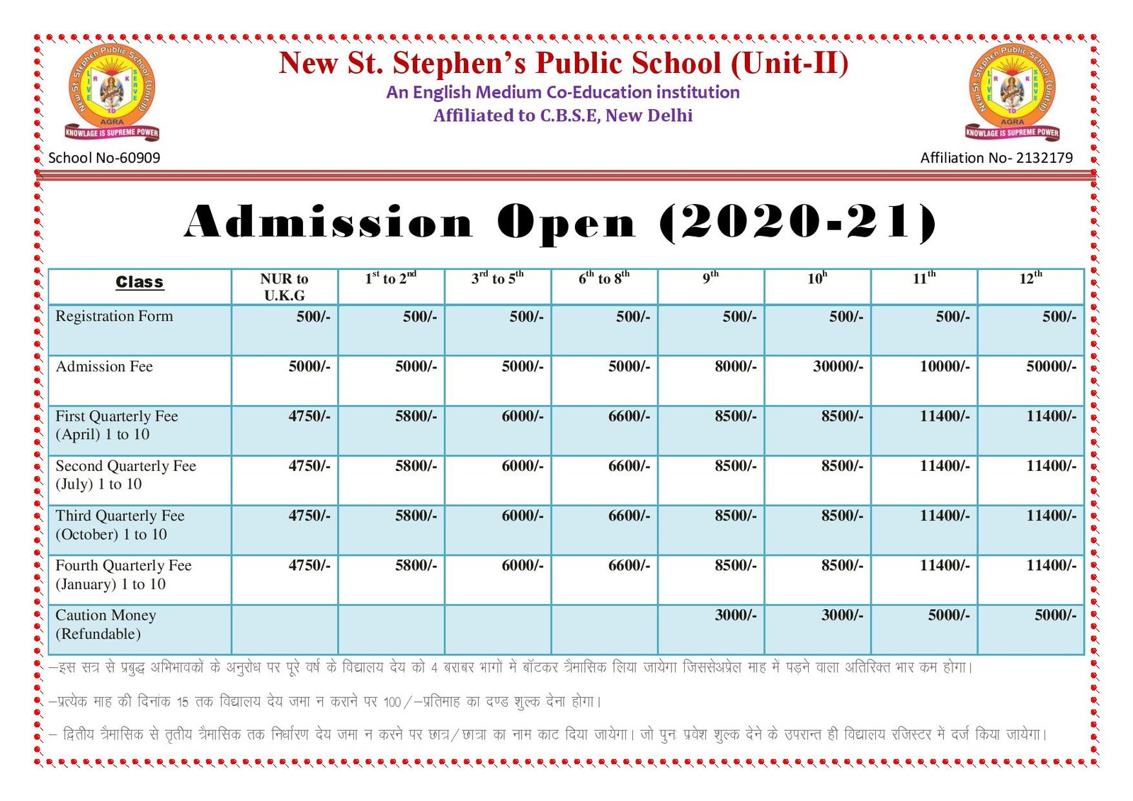 FEE STRUCTURE OF (2020 - 2021)